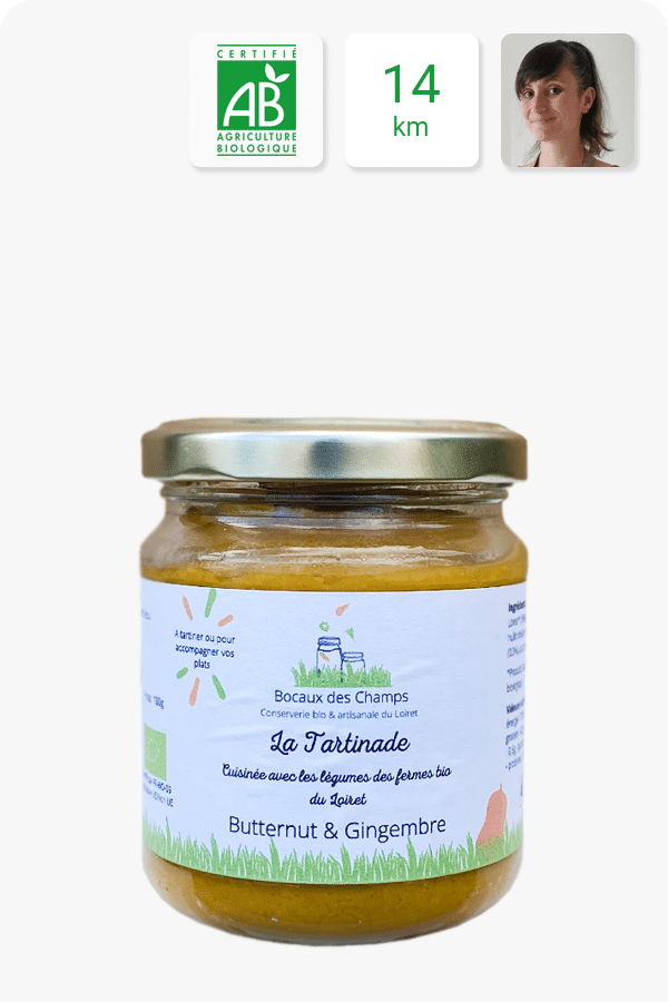 Composition : Butternut (93%), purée de sésame, huile d’olive extra vierge, ail, gingembre, sel, curcuma